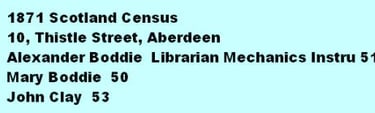 These were the parents of the aforementioned John Boddie and yes, they had one less ‘d’ in their name. To think that I had put the family history on ice for seven years because I had hit a brick wall on the Hunter/Boddie side. Suddenly, I have two great-great-great-great-grandparents on that elusive side of the family in Scotland. My Aberdeen roots are no longer a mystery! Particularly fitting because during Sir Alec Ferguson's extraordinary time at Aberdeen Football Club in the 1980s, I found myself supporting the team as wholeheartedly as if I lived there. Well my ancestors did live there.