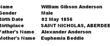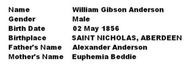 However Alexander didn't name any of his nine daughters Anne, which was the name of this William's mother. Experience shows that names play an important part in any family history. William's only daughter, Margaret, named her first daughter Jean, and her second daughter Isobel. Therefore either could have been named after either her mother or her grandmothers. Still no sign of our Old Machar William's mother Anne.