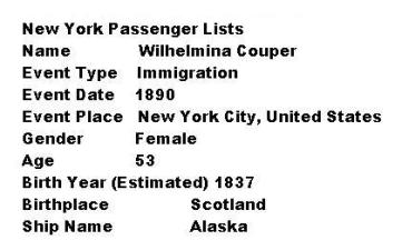 She was Alexander and Christina's youngest daughter, born in the summer of 1836, twenty-five years after their first child. On her death certificate, her father's name is given as William rather than Alexander. Given her Christian name, one wonders if she was an adopted child of Alexander and Christina. The latter was in her forty-fifth year now. Williamina does go on to name her first son William, giving further credence to the adoption possibility. Alexander's father was William, so it could just be a case of a grand-daughter remembering her grandfather, and the death certificate entry an error. Either way, Williamina was christened on July 6th 1836 at Saint Nicholas and led a very interesting life. She sure lived up to the ' Will ' part of her name.