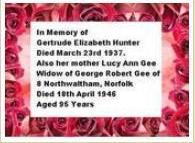 Their last child, George, now a very popular family name, was born in 1937. He married Mabel Crowfoot but no more details known, other than George only lived into his late forties. Rita Hunter, daughter of Stringer's elder brother Race, was also brought up in Stringer's family. See Race's section earlier.