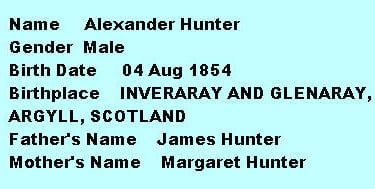 Continuing now with the children of Alexander Hunter and Christina Milne