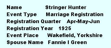 In 1925, he married Fannie Green. She was the youngest of three children, born to George and Fannie Green of Elm Lodge, Horbury. George William Green was a rag merchant by trade and a strong Wesleyan. George’s father had married Mary Stringer who was Stringer’s Grandmother Martha’s twin sister. Therefore Stringer’s Great Aunt Mary and Fannie’s Grandmother. See the Greens section.