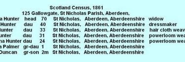 Unlike his siblings, there is no christening date or similar record of his birth. We only know of his existence by way of the 1851 Census where his age is given as twenty-five and his occupation as a hair cloth weaver like his sister Agnes. The only other record of an Adam Hunter is for a burial in Old Machar Churchyard on January 5th 1853. This most likely is our Adam Hunter.