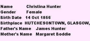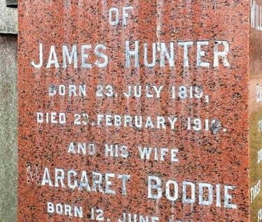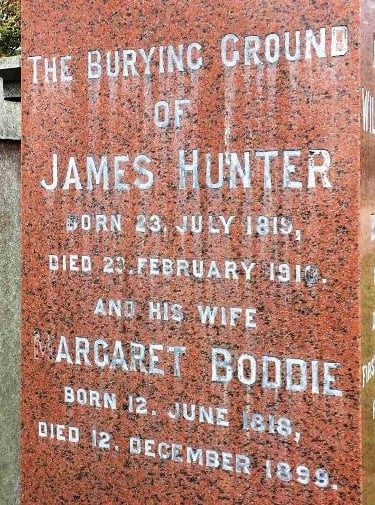 The Boddies and the Hunters came together with the marriage of James Hunter and Margaret Boddie on the 13th July 1843. See their family details earlier on this page.