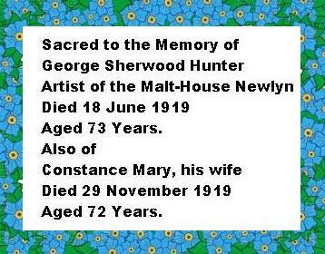 Sherwood married Gertrude Elizabeth Gee on June 1st, 1911 at St Marylebone Parish Church, London. Stringer Hunter was one of his brother's witnesses. Gertrude was born on June 3, 1879 in North Walsham, Norfolk. She was the daughter of George Robert Gee, a manufacturer and coach builder, and Lucy Ann Russell of Sewells Cottages, Cats Pit Lane. She had a younger sister called Mildred Helen. Her father George died aged only 39, but her mother Lucy lived to be 94. A widow for fifty-three years, Lucy went to live with Sherwood and Gertrude in Penzance. They had no children. When his Uncle George Sherwood and Aunt Constance died in 1919, Sherwood moved with Gertrude to his Uncle's beloved Malthouse, left to Sherwood in his will. They lived there until Gertrude's death on March 23, 1937. Her own personal estate amounted to £3,845. Gertrude and Lucy are both buried at the Sancreed Church Graveyard in Cornwall.