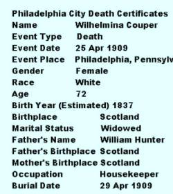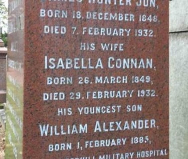 His father is also unknown but Williamina's choice of middle name is interesting, re-inforcing that she was a young lady of very strong character, befitting one born in the year of the Fire Monkey. Self-assurance, determination, and willpower are just a few of the many positive qualities she would have had. Williamina was the most independant of women who gave each of her children her own surname of Hunter, disregarding their fathers' surnames. She would have admired her sister Jane's courage in bringing up her son Alexander Hunter Aga, and clearly saw her as a role model. Jane had died a few months after the birth of Williamina's first son, and with the birth of her second son, here was a chance for her to honour Jane's memory. At the same time, of course, she was showing her support for her nephew.