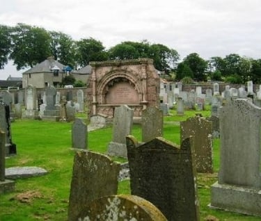 I have no definite information about William but his children are well documented at FamilySearch with christening dates, and with William given as their father but no mother named. Whether William also grew up in Newhills, Aberdeen, as his children did, is not known, nor whom his parents were. A possible candidate for our William is the one born in Fyvie, Aberdeenshire on 23 January 1750. A better one is the William Hunter born on November 29th, 1745 in Old Machar, Aberdeen. His father was Andrew Hunter and his mother might be Anne Irvin, born in 1717. William's son, Alexander, named his first son Andrew. So far, so good. The picture, above left, is Newhills Cemetery.