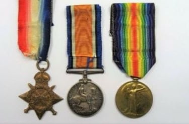 WGeorge didn’t marry and died from war wounds on the 10th of November 1918. He was buried in Caudry British Cemetery, Nord, France, grave I. B. 19. (above left) His family were presented with his 1914 Star, British War & Victory Medal in the immediate post-war years (above right)