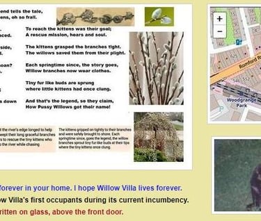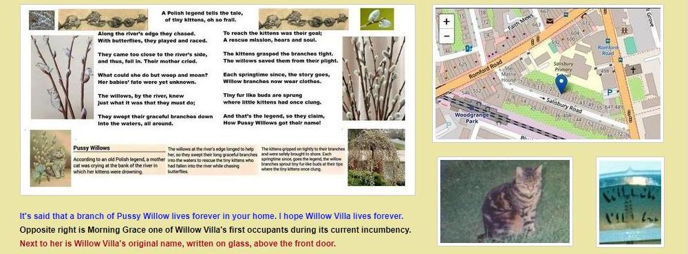 This is the story of a Road in East London and the people who lived here. I have lived here at Willow Villa since April 5th, 1994 when I bought 51, Salisbury Road. It is the only home that I have ever owned and I have spent nearly 29 happy years here. But what of the other people who have lived here? How were their lives in a house that I love so much. Having lots of information in the house deeds about former residents and owners, prompted me to explore further, beyond my own house. Now it has become the History of Salisbury Road itself, particularly as my house deeds refer to other houses in the road too. The most interesting feature being that the 6 houses before mine and the 3 houses after mine all have names beyond just numbers. The names of trees and flowers. When I first moved in, I had noticed above my front door, on a glass panel, the name 'Willow Villa', written in black paint. I wondered if all the houses in the road had such names. Without having access to the other houses' deeds, I cannot say. I will start by sharing these wonderful names. Each has Villa as the second part of the name.