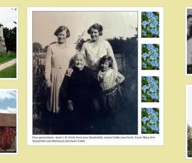 William Henry Hunt m. Emily Goodchild (born 1876, Ashwell) in 1897 in Royston. Children: Jessie Amelia C b.1898, Leonard b.1901. They lived in Dame Street, Islington. William was a clockmaker. Emily, like William, had several siblings - 5 sisters and 3 brothers. See below for a lovely photo of Emily and Jessie Amelia plus Emily's mum and Jessie's daughter. Huge thanks to Jackie Lehane and Vivienne Robinson.